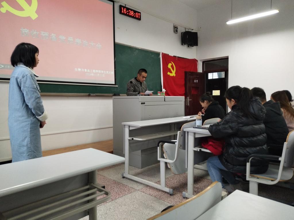 本次大会由陈珍瑶同志主持。大会开始,先由各位发展对象依次上台发言,对发展期间各方面情况进行汇报。随后由发展党员的第一、二培养联系人对其发展期的考察情况做出评价。之后再由支部现有正式党员,采用无记名投票形式进行表决,最终具有表决权的10名支部党员一致同意吸收12位同志为中共预备党员。