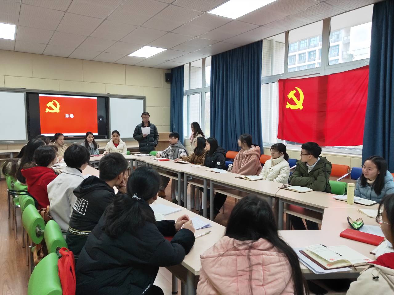 本次大会由向丽霞同志主持。大会开始,先由各位申请转正的同志依次上台阐述,宣读转正申请书。随后由各预备党员的第一、二入党介绍人对其做出客观的评价,并根据其在预备期的表现提出能否按期转正的建议。之后再由支部党员对其进行批评指正,最终经无记名投票形式进行票决,一致同意7位同志按期转正。