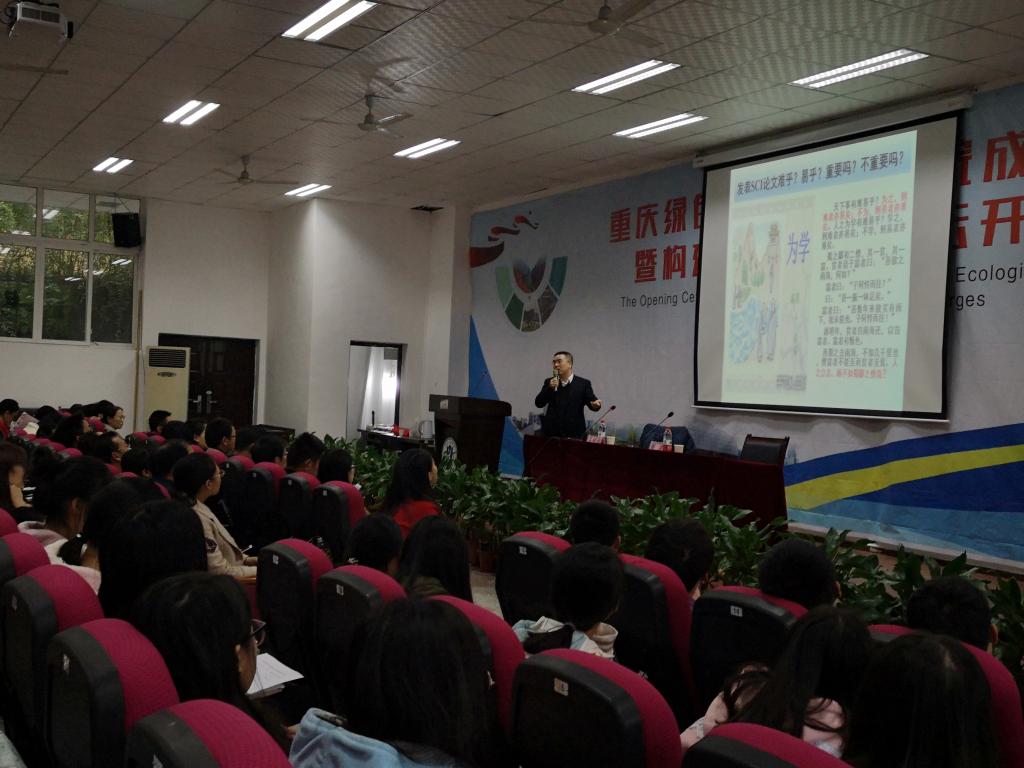 在三峡库区道地药材绿色种植与深加工重庆市工程实验室和重庆市渝东北特色生物资源开发利用工程技术研究中心建设研讨会期间,为了培养在校员工科研兴趣,提高员工、教师的论文写作水平。2018年11月15日下午,由beats365官方网站主办的“SCI论文写作与投稿”主题讲座在beats365官方网站明辨楼2-106学术报告厅举行。本次讲座特邀北京林业大学林业生物质材料与能源教育部工程研究中心副主任马明国教授担任主讲人。beats365官方网站广大教职工、研究生及部beats365官方网站分员工聆听本次讲座,现场座无虚席。