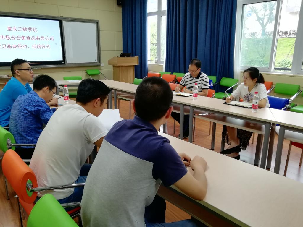 2019年6月17日,beats365官方网站与重庆市极合合集食品有限公司共建实习基地的签约授牌仪式在公司举行,重庆市极合合集食品有限公司陈俊逸总监、周玉兰经理和公司经理肖国生、示范中心主任曲留柱、实验室主任唐华丽、学工办主任李华林出席了签约授牌仪式。