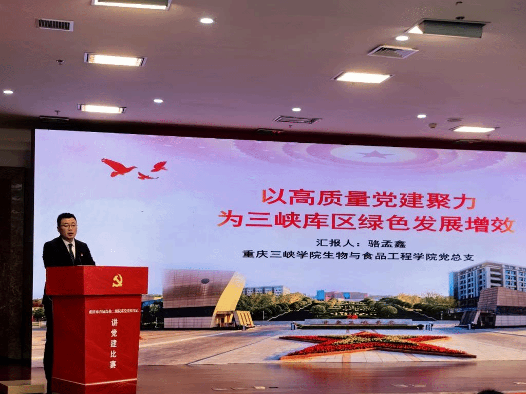 11月27日—28日,由市委教育工委主办的重庆市首届高校二级院系党组织书记讲党建比赛在重庆师范大学举行,共有70所高校的二级院系党组织书记参赛。公司党总支书记骆孟鑫同志代表公司参加比赛,并荣获一等奖。