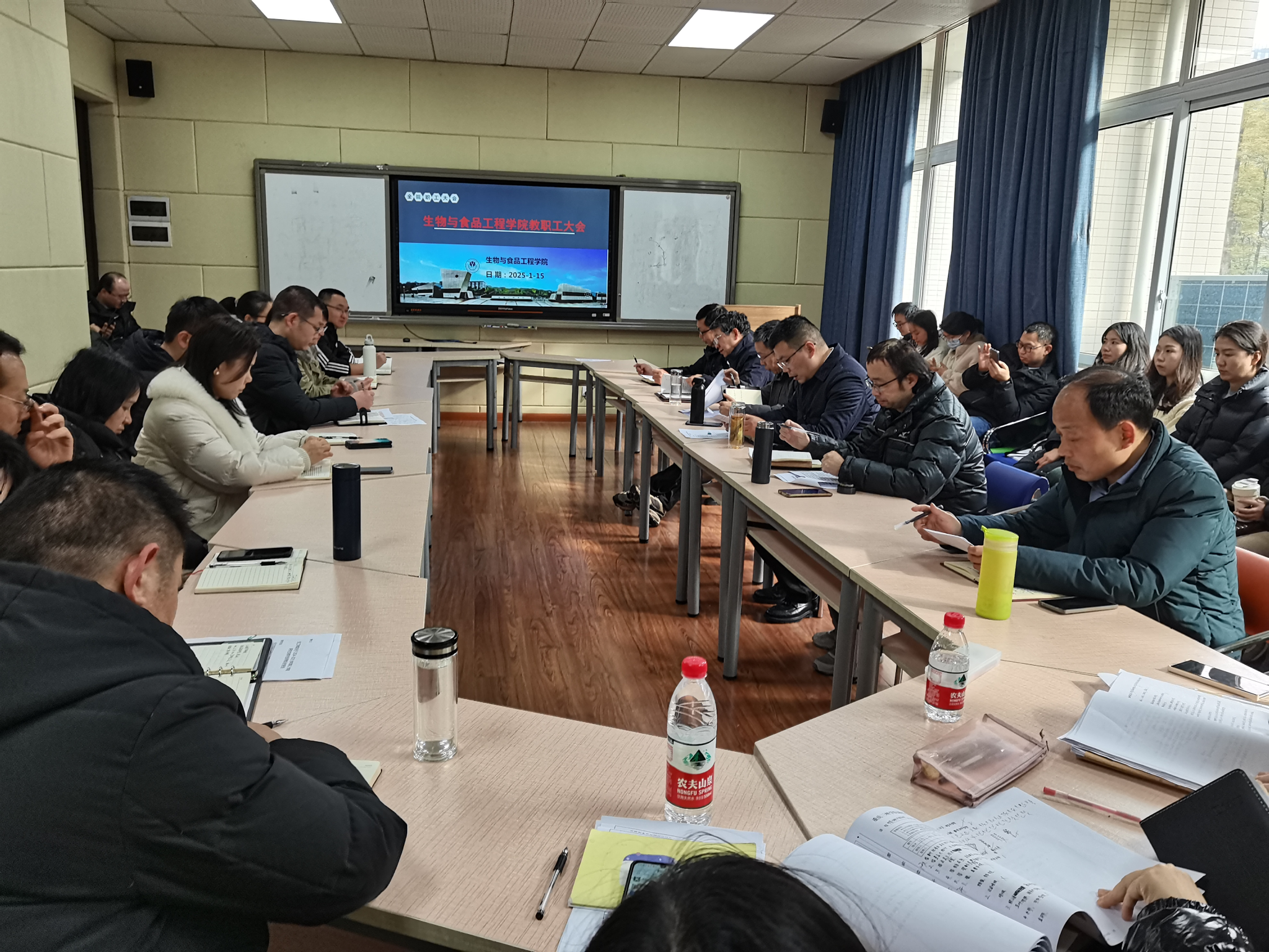 1月15日下午,公司在慎思楼2栋216召开秋季学期工作总结会,党总支书记骆孟鑫主持会议,全体教职工参会。