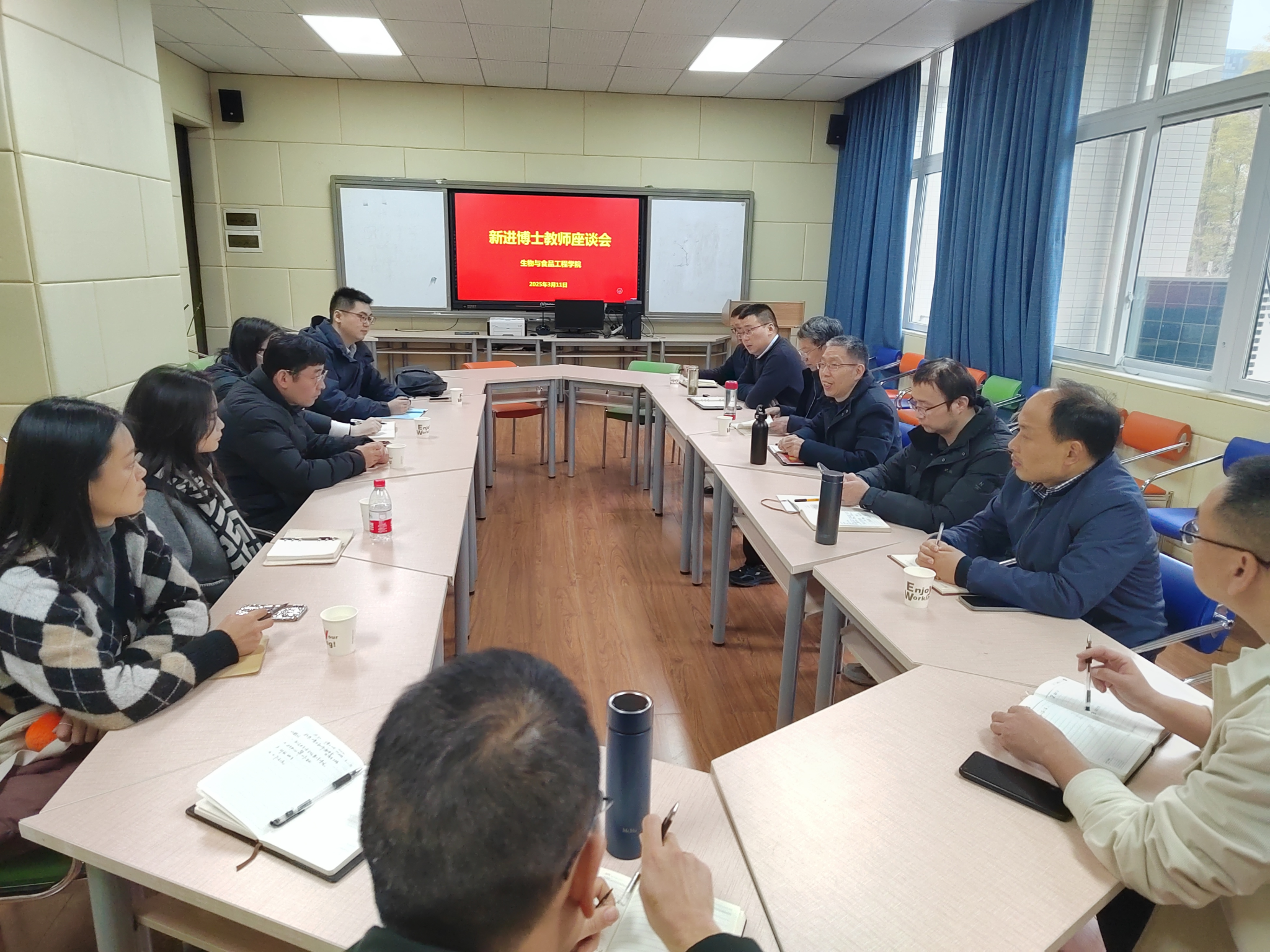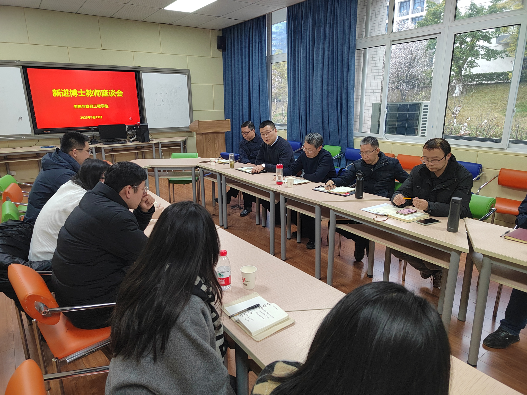 会上,肖国生从科学研究、公司产品、职称晋升等方面作指导,要求新进博士教师明确目标,积极作为。5名新进博士教师从科研方向、科研条件、项目申报、团队建设等方面作分享交流。