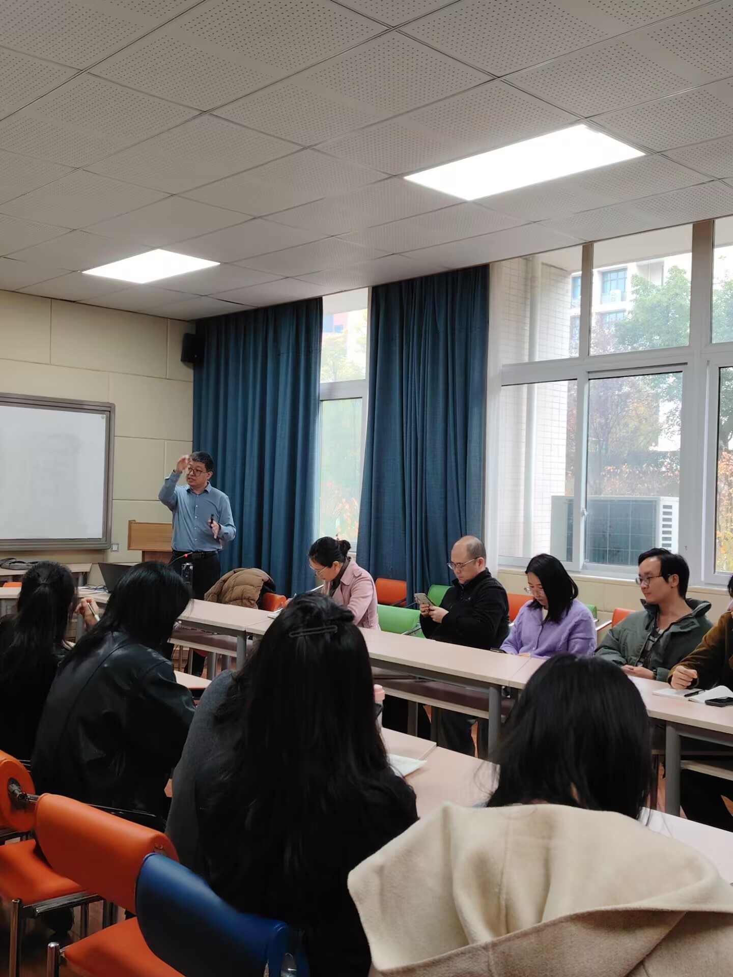 培训会上,沈教授结合多年参与国家基金项目的经验,系统讲解了国家自然科学基金的主要分类、资助率变化趋势、不同类型项目的申报特点,并重点解析了基金选题与申报指南之间的关系,深入阐释了“面向世界科技前沿、面向经济主战场、面向国家重大需求、面向人民生命健康”四个面向在选题上的具体要求。