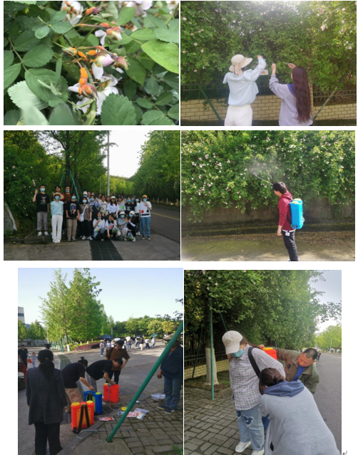 本次蔷薇花病虫害防治是生物与食品工程公司党总支发挥专业优势,巩固拓展党史学习教育成果,持续深化“我为群众办实事”实践活动的一个缩影。也是重庆市一流课程《园艺植物病虫害防治》立足校园环境,实践育人的一次有益探索。今后,公司将积极树立“党建+”理念,发挥专业特色,结合已开发微信小程序,让公司员工积极参与到校园常见植物名片制作,大树修剪、冬季涂白等校园绿化植物日常养护管理,以及为办公区域室内绿植养护进行不定期指导等工作之中。让理论与实践相融合,让教师的教学引导能力和员工的专业实践能力共同提高,让师生校园主人翁意识深入人心,共同为公司植物正常生长、繁花似锦保驾护航。