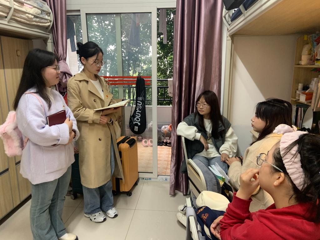 为了解新生思想动态,提高新生党性认识,更好地发挥党员先锋模范作用,11月9日,公司初心工作站在蓝雾苑开展了“员工党员进寝”活动,公司6名员工党员带头走访寝室。
