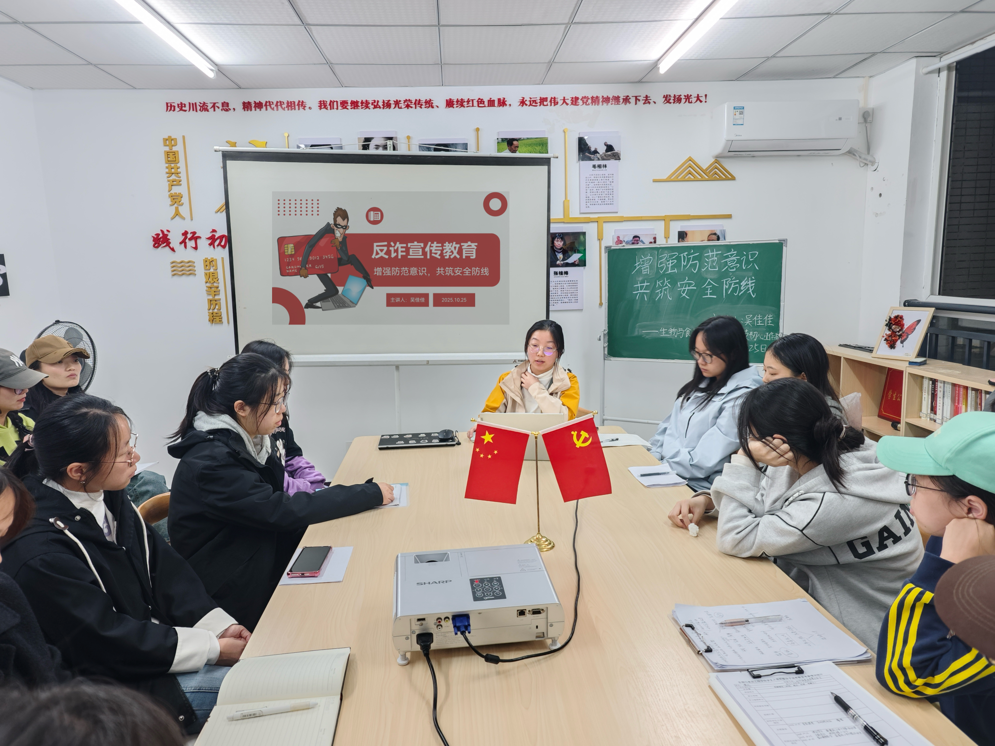 10月25日19:00,公司初心工作站在蓝雾苑2舍4楼活动室开展第40期“每周一学”活动,吴佳佳同学分享老员工反诈知识,共计21人参加。
