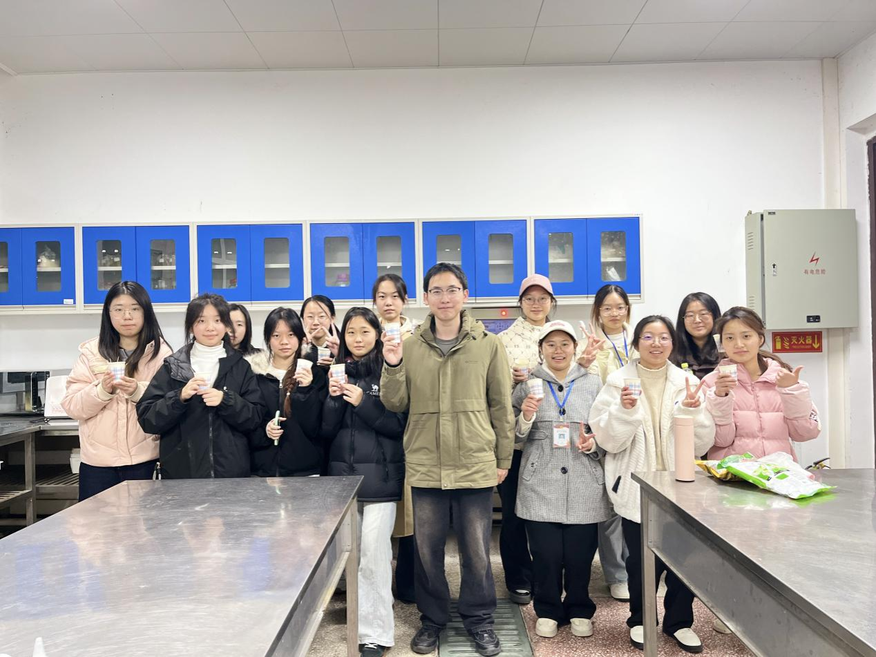 活动伊始,主持人林莹介绍了小雪节气的历史溯源、气候特征,以及 “冬腊风腌”“吃糍粑” 等民俗内涵。随后,同学们严格遵循实验室安全规范,参照现代食谱开展麻糍制作实操:先调和原料并蒸制,再耐心揉搓糯米团至光滑有弹性,最后分割成型并裹上熟黄豆粉。活动过程中,大家协作默契,现场氛围热烈。