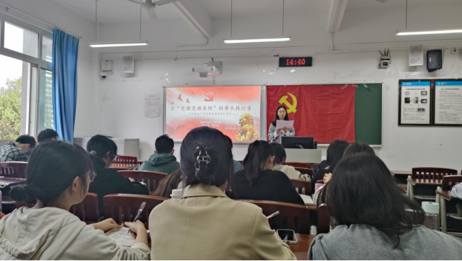 本次会议由员工第一党支部书记许美琳同志和员工第二党支部书记龚莉同志主持。首先,许美琳同志、龚莉同志领学了《中共教育部党组关于高公司党组织“对标争先”建设计划的实施意见》,传达了《关于开展全市第二批新时代高公司党建示范创建和质量创优工作申报的通知》。并结合员工党支部的实际情况鼓励员工党员同志自主创新组织活动,做好党员先锋模范作用,带领同学们学知识,做志愿服务实践活动。紧接着李启琪同志、任芝雨同志、韩天硕同志分别带领大家学习了《中国共产党党徽党旗条例》、习近平总书记在学习贯彻习近平新时代中国特色社会主义思想主题教育工作会议上的重要讲话精神和国家安全的相关知识。丰富的图文与互动问答,给与会人员带来生动的一课。