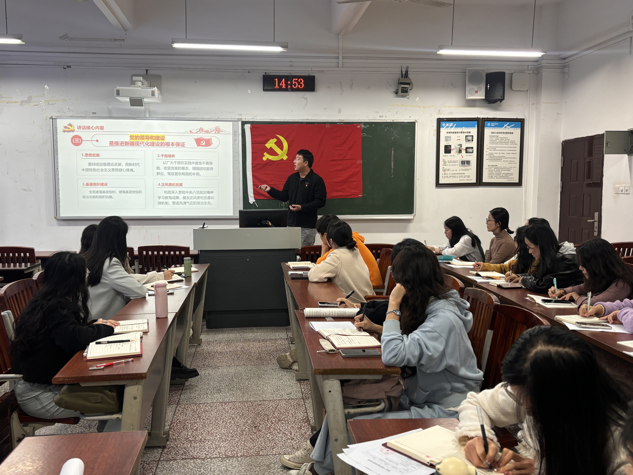 活动中,党员代表带领全体参会人员深入学习了习近平总书记在新疆考察时的重要讲话精神。通过原原本本研读讲话原文,重点围绕坚持以人民为中心的发展思想,统筹“稳定”与“发展”等核心要义进行了系统阐释。同时,结合《中国共产党思想政治工作条例》和关于国庆中秋期间严格落实中央八项规定精神、从严纠治“四风”的通知要求,对中央纪委国家监委通报的8起违反中央八项规定精神典型问题进行了深入剖析,教育引导全体党员严守纪律红线、筑牢廉洁底线。活动还传达学习了习近平总书记关于党校工作的重要指示精神,强调要牢牢把握党校初心,坚持高质量育才、高水平献策的根本要求。