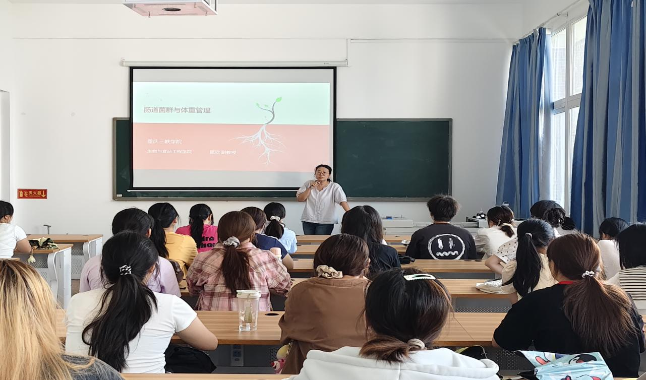 在“肠道菌群与体重管理”科普讲座中,顾欣副教授首先从BMI引出体重管理的话题,然后通过肠道菌群的构成、功能切入,深入浅出地讲解了肠道菌群与人体健康的密切联系。同时结合案例,详细阐述了不健康饮食、缺乏运动等不良生活习惯如何破坏肠道菌群平衡,进而导致体重增加。她倡导同学们规律健康饮食,搭配日常运动,用科学的方式呵护身体。