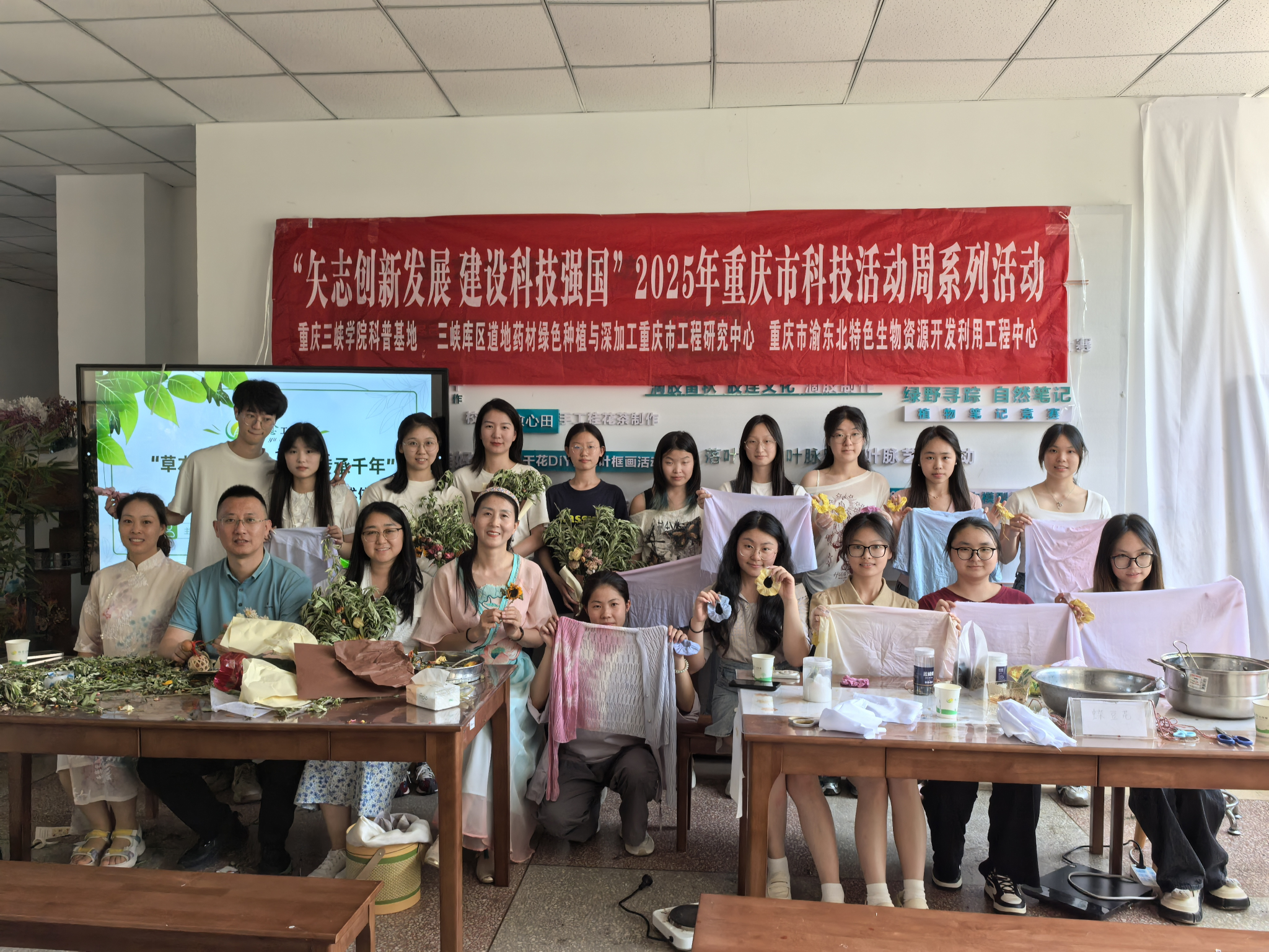 在科技活动周期间,beats365官方网站、三峡库区道地药材绿色种植与深加工重庆市工程研究中心共举办科普活动6场,主题分别是“草木染色绘锦,匠心传承千年”植物扎染活动,“香韵悠长,古意绵延”合香文化科普,“肠道菌群与体重管理”科普,“神奇的海洋微生物”科普,“红橘家用技术”科普,“药食两用植物”科普,共计约500名师生参加。
