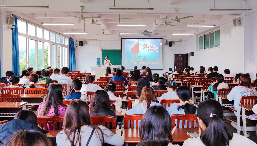 会上,辅导员从征集条件、参军入伍优惠政策、征集流程及报名程序流程三个方面开展参军入伍政策宣讲,鼓励更多的同学响应国家号召,踊跃报名参军入伍。退役复学员工黎明超分享了自己的部队服役经历和感受,鼓励大家积极应征入伍,投身军营,在祖国需要的地方贡献自己的力量。