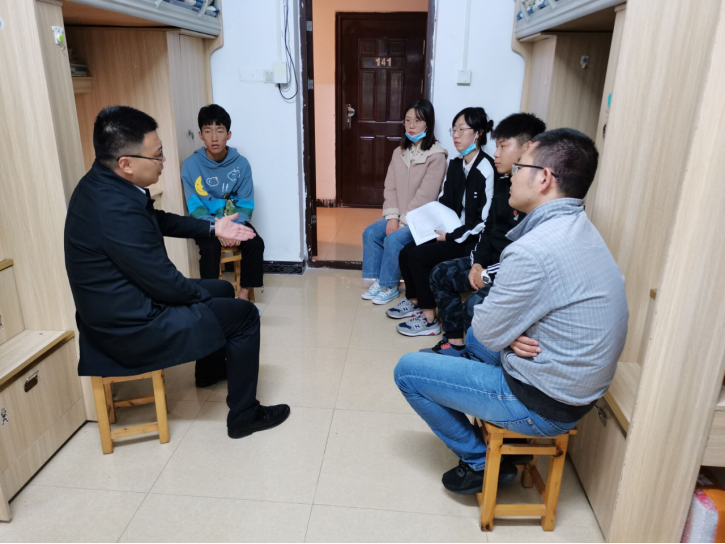 11月6日,公司党总支书记骆孟鑫,学工办主任李华林,辅导员陈华华、许美琳走访员工寝室,主要察看公司文明寝室和新生宿舍。