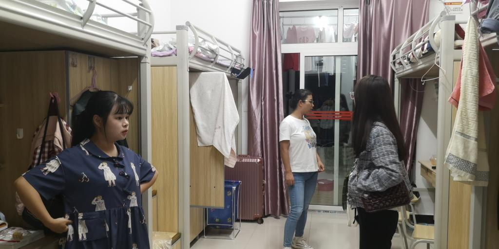 9月23日19:30,公司学工办副主任李华林,辅导员向丽霞、蒋园园、陈华华深入19级新生寝室,了解新生们的近况,为他们带去温暖与关怀。