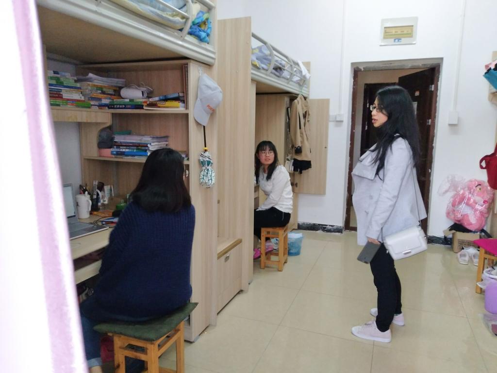 本次检查着重查看员工宿舍卫生、违规电器、宿舍文明三个方面。同时老师们也关心了同学们的学习、就业情况和困惑,拉近了师生之间的距离。本次检查总体情况良好,宿舍干净整洁,床铺上物品及其他生活用品摆放整齐,给人以温馨的感觉;检查中没有发现大功率电器使用情况;但仍有少部分宿舍因物品过多,而摆放杂乱无章,另有部分同学缺乏文明礼仪素养。老师们对于情况不佳的宿舍同学进行了批评教育和指导,对于问题较为严重的寝室做了详细记录,并要求及时改正。