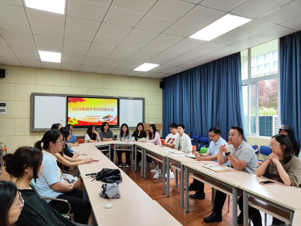 在端午节来临之际,为表达对家庭经济困难员工的关心,了解员工的学习生活情况,6月6日下午,公司在慎思楼2栋216召开2024年端午节慰问座谈会,公司党总支副书记陈文剑、学工办主任闫兴运、全体辅导员、各年级员工代表参会。
