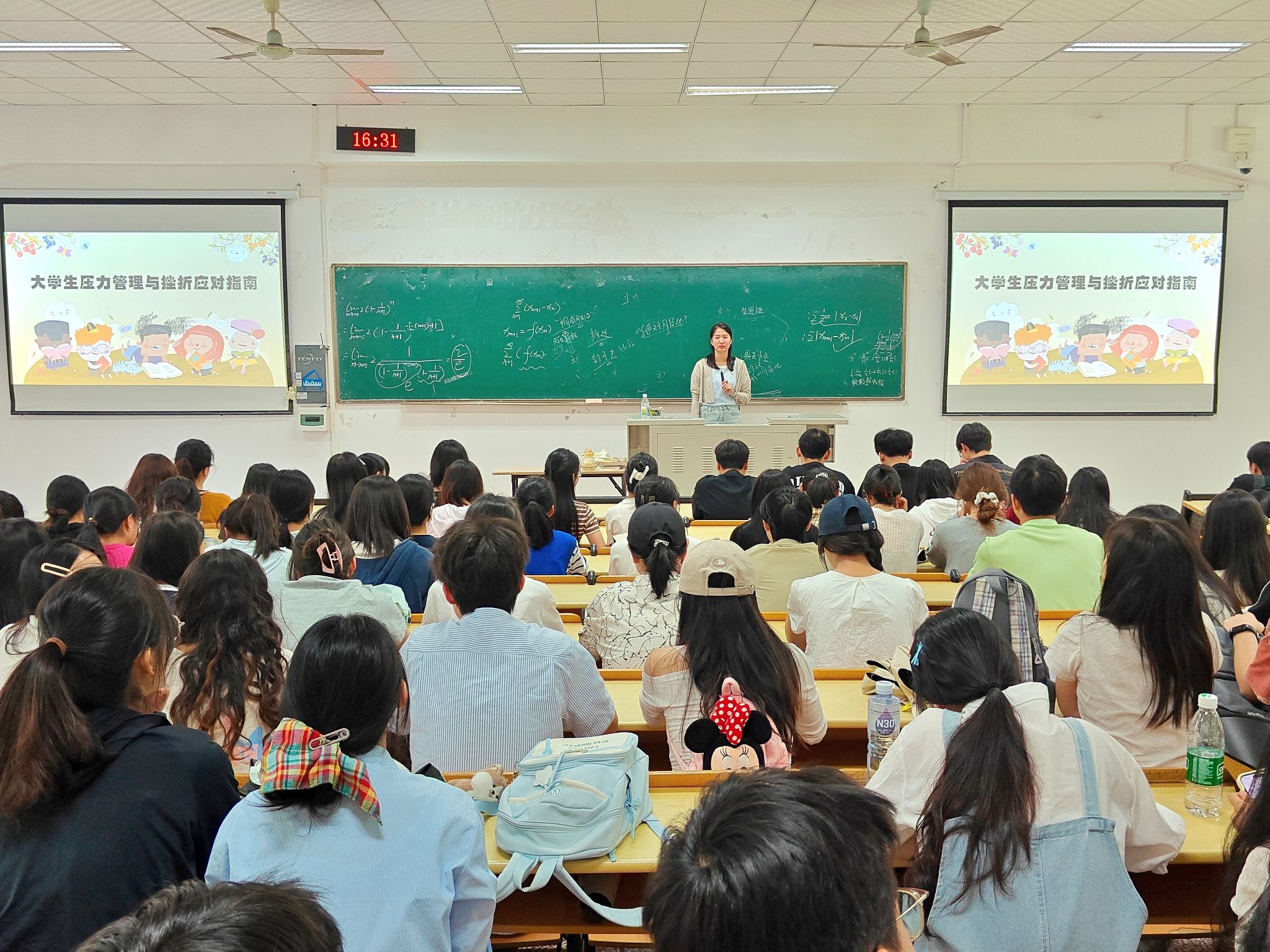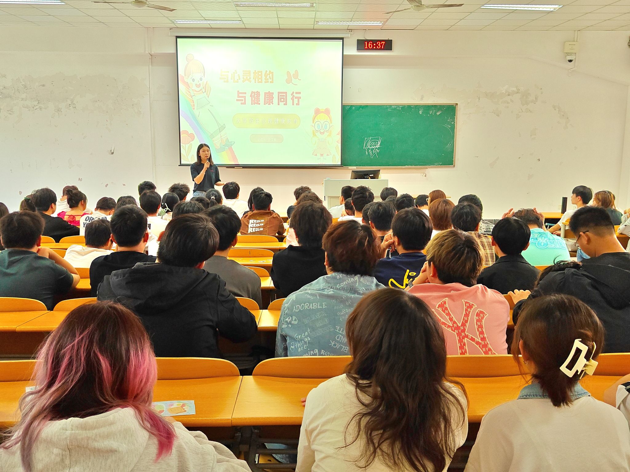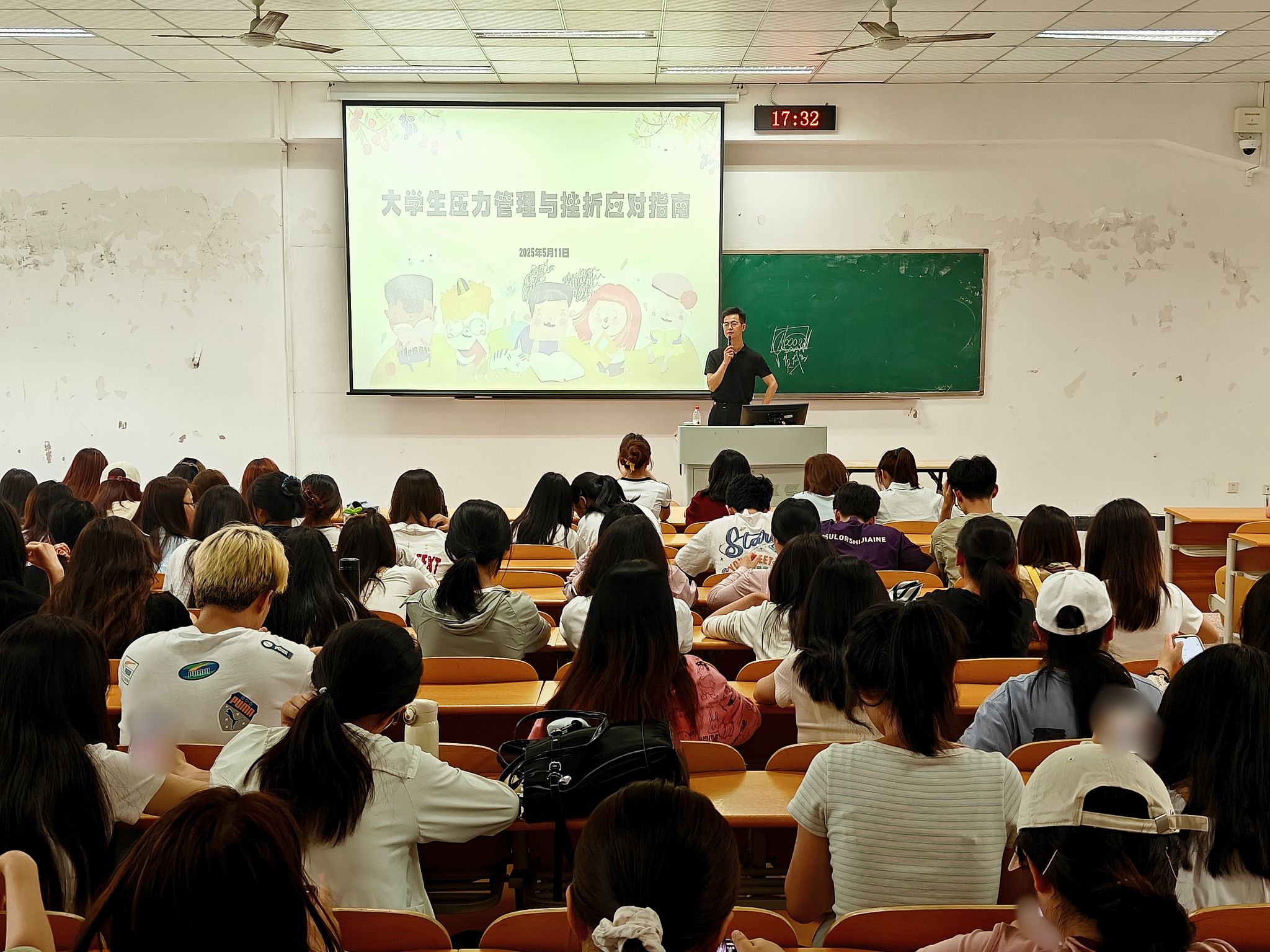 辅导员首先阐释了压力的本质,并结合同学们面临的学业、社交、就业等多方面因素,详细说明了压力来源。辅导员强调了正确认识压力与挫折的重要性,引导同学们要以积极心态看待困境,并分享了实用的心理调适方法,帮助同学们掌握心理自我调节的能力。