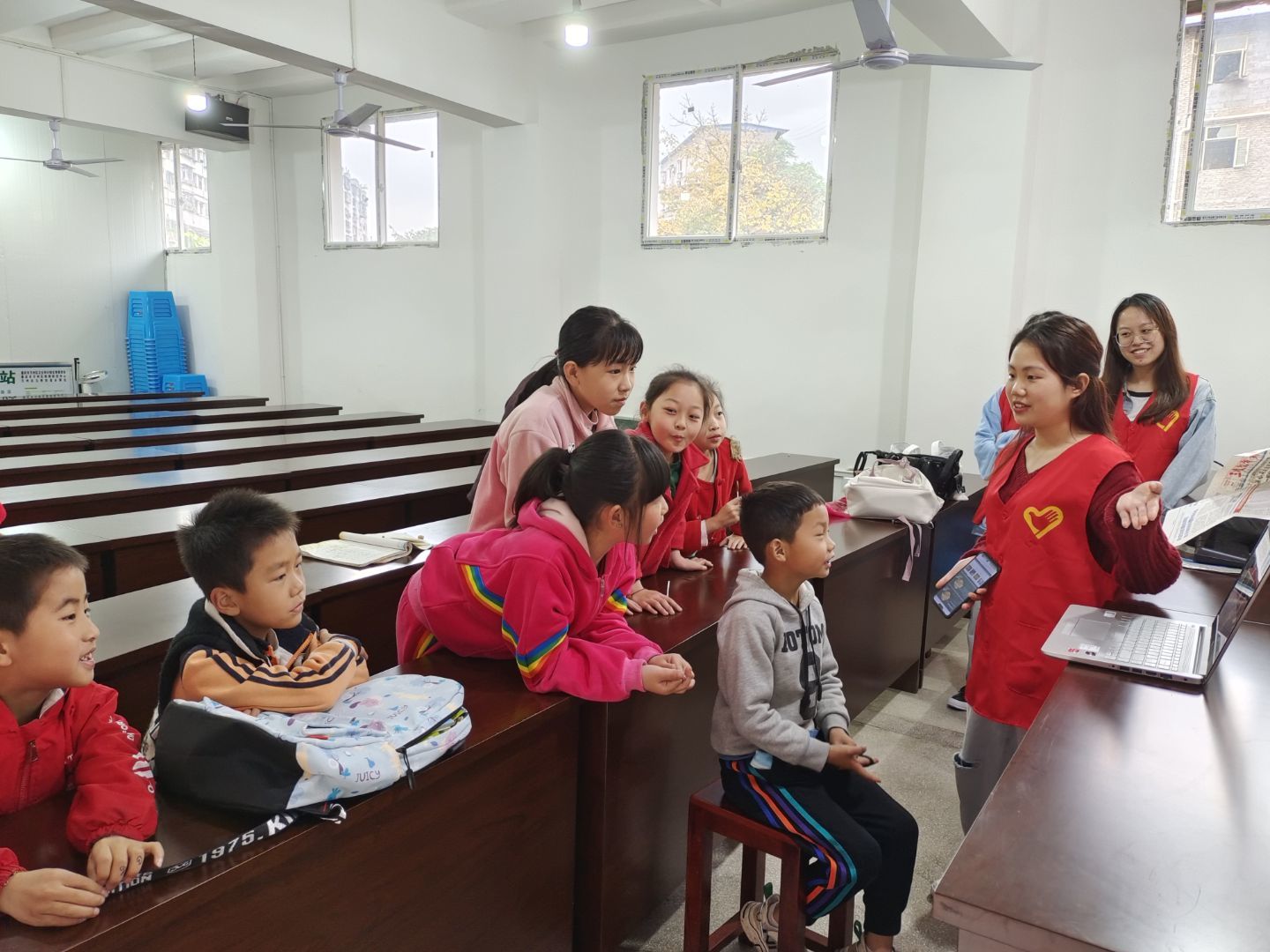 本月活动共开展三期,活动主题分别为“趣味生物小课堂”、“垃圾分类 志愿同行”、“科技战役 创新强国”。活动开始,志愿者辅导小朋友完成功课,为他们答疑解难,从语文、数学再到英语,志愿者都耐心讲解、仔细检查,逐字逐句教读,一对一辅导,帮助小朋友们学习。此外,志愿者还进行了知识拓展,在课堂上为小朋友们讲解生物知识、垃圾分类方法及科普党史、科技发展史。最后,志愿者与小朋友们一起拍照留影,以纪念课外辅导工作圆满完成。