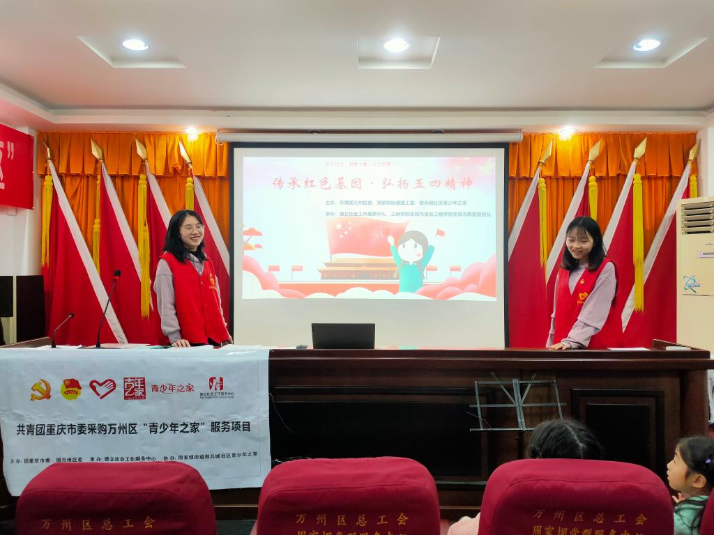 2021年4月24日下午14:00,公司党员志愿服务队联合万州区德立社会工作服务中心举办的“传承红色基因,弘扬五四精神”主题教育活动在万州区救兵城社区党群服务驿站展开。
