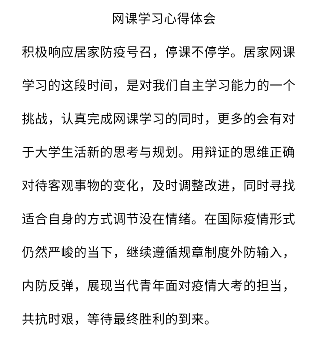 “停课不停学”的线上教学方式,有利于疫情防控的同时,帮助同学们学习专业知识,为返校后的线下学习奠定基础。线上学习接近尾声,疫情仍在继续,希望同学们不能松懈,配合防疫工作,为返校做好充足准备。(生工公司潘传青李华林)