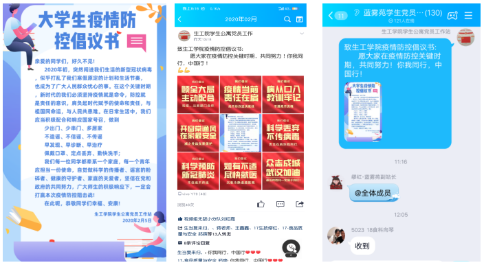 老员工疫情防控倡议书主要是引导同学们正确认识新型冠状病毒肺炎疫情,提高同学们自我防疫意识,明确坚持疫情就是命令,防控就是责任。呼吁同学们积极响应国家号召,做到少出门、少串门、多居家;不造谣、不传谣、不信谣;早发现、早诊断、早治疗;佩戴口罩、定点丢弃、勤快洗手。增强同学们理想信念,在党和国家的共同努力,广大师生积极配合下,一定会打赢本次疫情防控阻击战!随即开展以“抗疫行动”为主题的“手动加油接力活动”,以QQ空间作为主要平台,在工作站各分站群同时发出“抗疫行动”“手动加油接力”号召。工作站站务人员和广大同学纷纷参与接力,在网络空间中形成接力链,源源不断的传递祝福,共同为武汉加油,为中国加油。