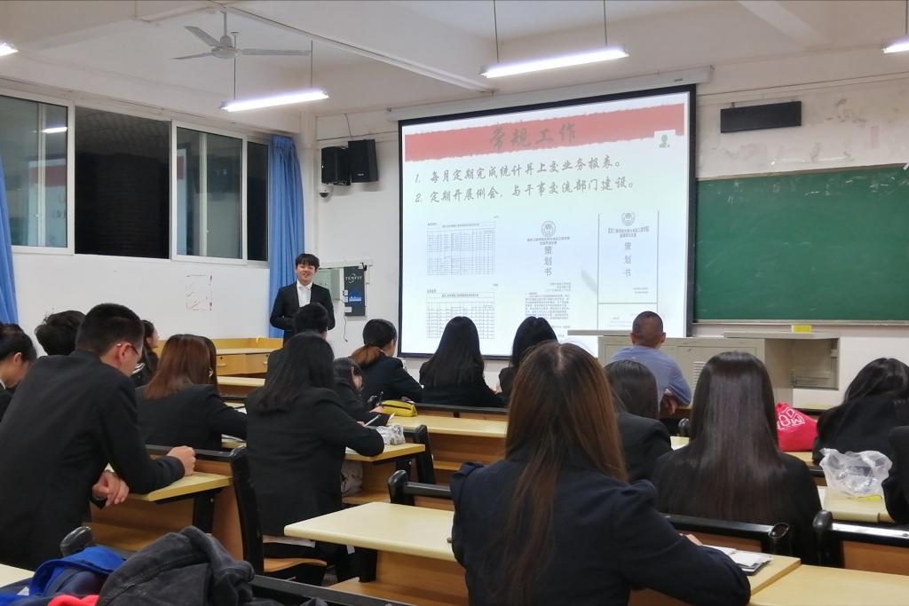 会议开始,14个团总支员工会部门代表依次上台对本学期工作进行了详细地汇报总结,其中包括本学期以来部门基本工作完成情况、工作中取得的成绩、工作中存在的不足以及今后工作的思考。除此之外,许嫒香学姐代表员工会主席团阐述了在员工会工作的心得,并寄托了对公司团总支未来发展的希冀。大会最后,李老师对各部门成员的辛勤工作给予感谢,同时也指出了团学工作中存在的不足,提出公司今后团学工作的努力方向和改进思路。