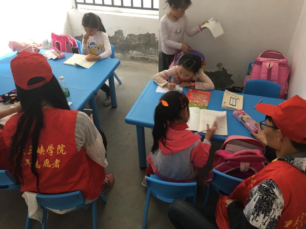 活动过程中,身穿红马甲的志愿者认真地辅导低年级小朋友各类学科的作业,纠正他们错误的写字姿势,检查他们的作业是否正确等。即使是不会的题目,在志愿者的耐心讲解下也迎刃而解。志愿者们以极高的热情投入到讲解中,活跃了气氛,带动了孩子们的参与性,提高了学习效率。活动期间,同时也与孩子们共同经历了一段短暂而美好的午后时光。