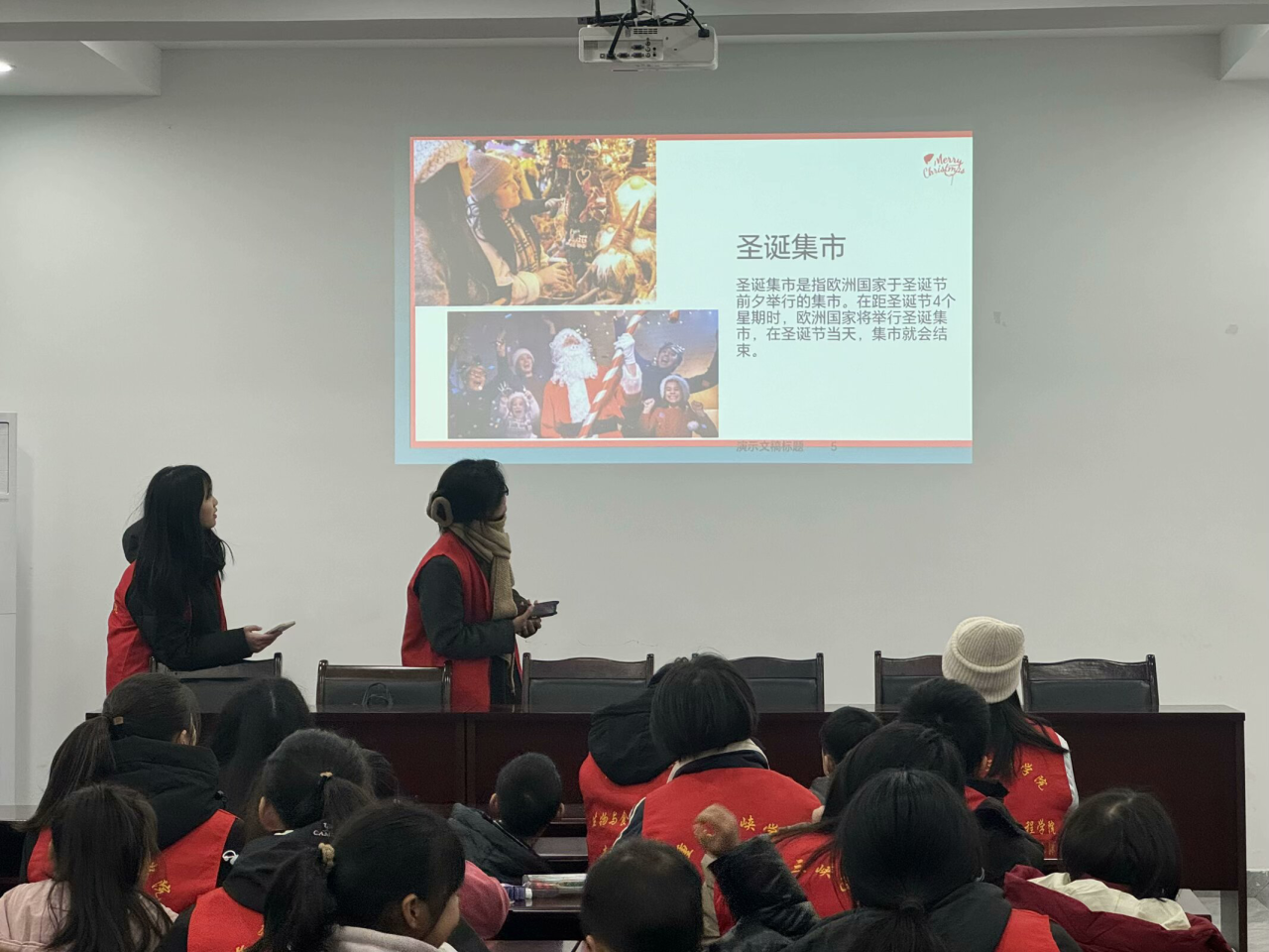 活动伊始,志愿者通过简单易懂的语言,充满童趣的图片,向小朋友们展示了大家印象中的圣诞节。在科普完圣诞节之后,志愿者为小朋友们科普平安夜是长津湖战争胜利的日子。同时志愿者们带领小朋友们了解圣诞节与中国文化融合的例子,既保留了圣诞节的元素,又融入了中国文化的独特魅力。