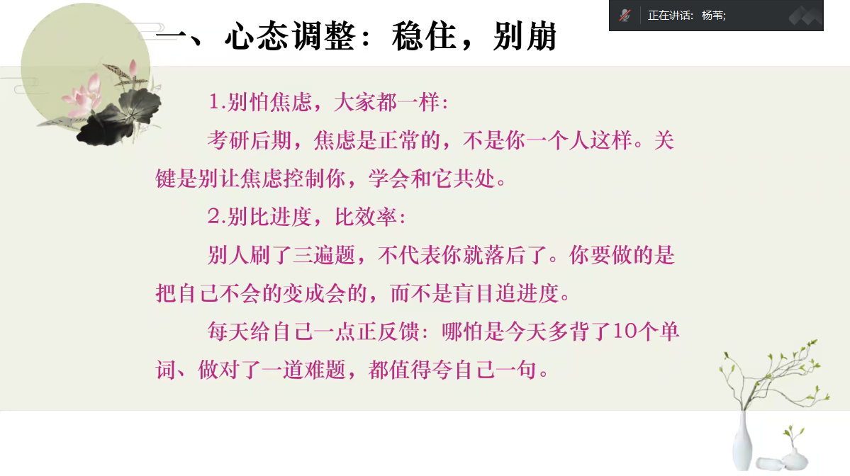 为帮助备考学子明确复习方向,掌握实用技巧,缓解备考焦虑,2025年10月16日下午,公司于线上平台举办“研路同行,筑梦未来”考研冲刺动员会。
