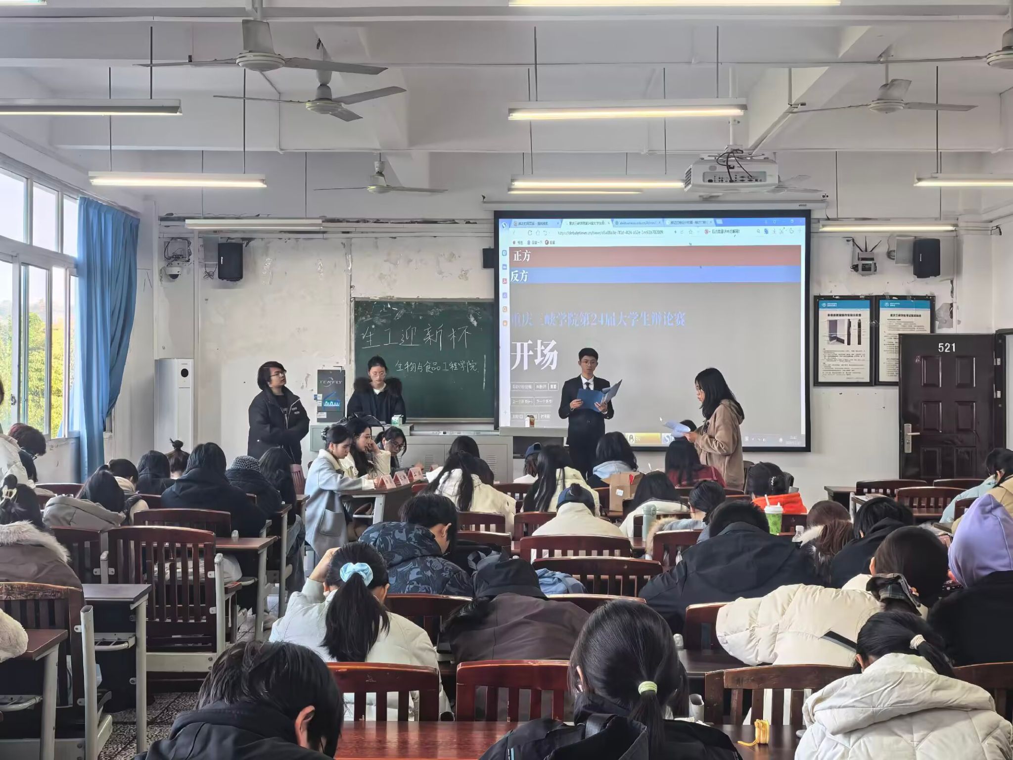 2025年11月20日,公司“迎新杯”辩论赛在明辨楼1-521教室成功举办。本次活动聚焦大公司园“快餐恋爱”现象,旨在通过多维度思辨引导新生树立健康恋爱观,学会在情感关系中建立自信、避免内耗。活动特邀院辩论队队长及骨干队员担任评委,吸引80余名员工到场观摩。