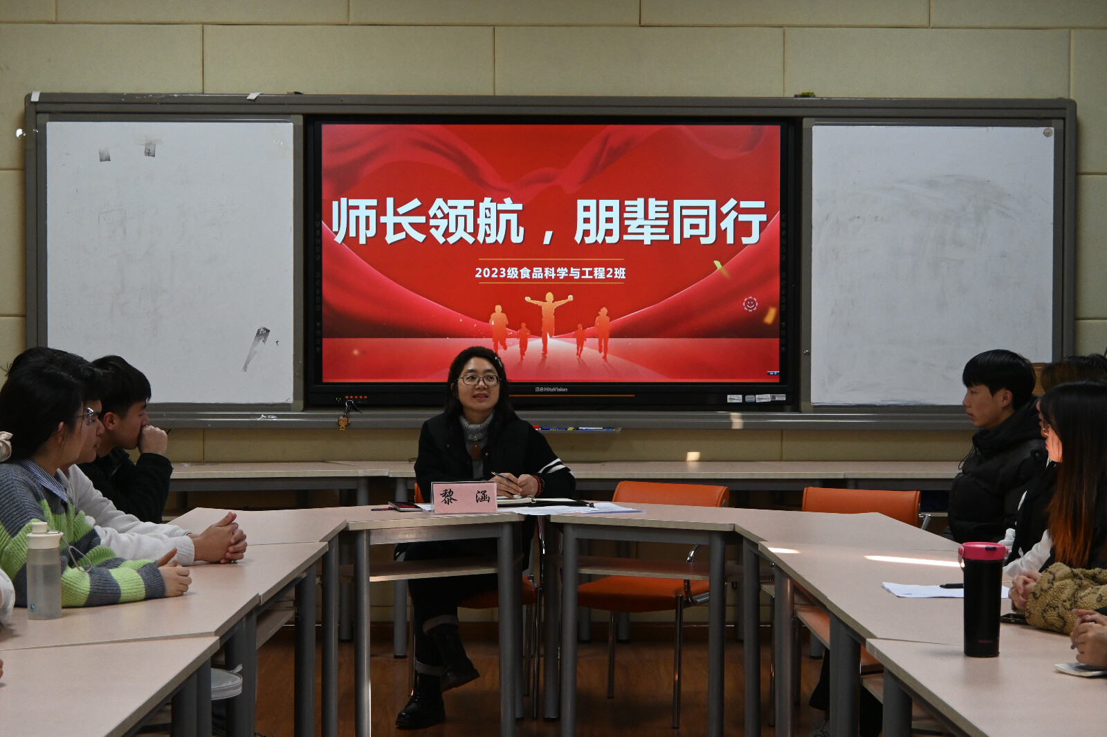 2025年12月5日,公司在慎思楼2-216开展“师长领航,朋辈同行”领导干部联系班级活动。公司党总支副书记黎涵为2023级食品科学与工程2班全体员工作专题指导报告,旨在助力员工明确发展方向,提升综合能力。