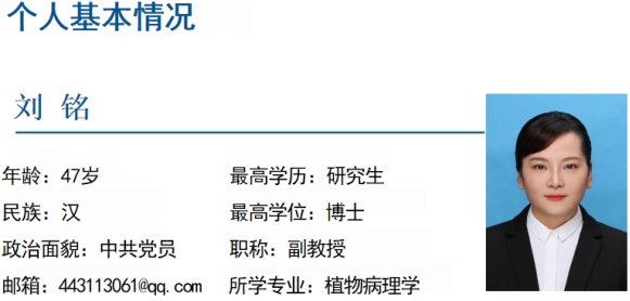 主要从事病虫害绿色防控研究,主持、主研国家自然科学基金委、重庆市科学技术局、四川省教育厅、重庆市教委、凉山州科技局、万州区科技局、重庆三峡云海药业股份有限公司等各级各类项目10项;获地(厅)级科技进步奖二等奖2项、三等奖1项,在plant disease、植物病理学报、植物保护、菌物研究等期刊发表学术论文30余篇,其中SCI论文8篇,主编、副主编著作2部,主编、副主编教材3部;授权国家发明专利和实用新型专利8项;命名病原菌新种1个,发现病害新记录10个。
