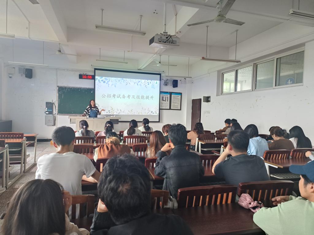 为帮助同学们有效备考公招考试,提升应试技能,增强就业竞争力。公司4月21日下午14:00在明辨楼1栋421室、慎思楼4栋416室分别开展“公招考试备考及技能提升”主题活动,公司辅导员许美琳、龙颖主持开展,公司大三员工、大四毕业生参加,共计456人。