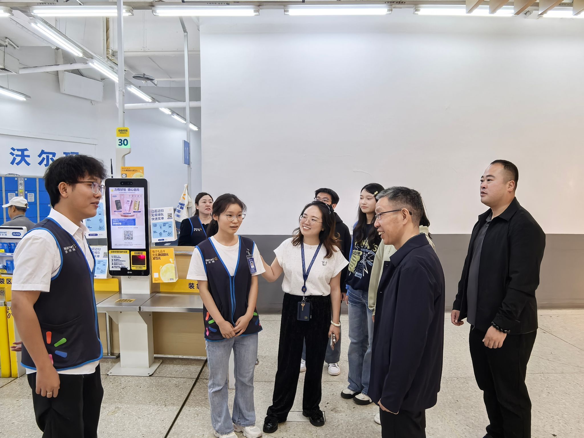 在沃尔玛人力资源部负责人刘总的带领下,大家首先参观了万州分店卖场、仓储物流中心及员工培训基地,刘总详细介绍了沃尔玛“顾客至上、员工为本”的企业文化,以及在食品安全管理、供应链优化、数字化零售等方面的创新实践。参观过程中,师生们与在岗的实习员工亲切交流,了解他们的工作内容、成长收获及职业规划。实习员工表示,企业完善的培训体系和导师制度帮助他们快速适应职场,也深化了对专业知识的实践应用。在随后开展的座谈会上,双方就人才需求、实习实践及校企合作等方面进行了深入交流,并期望在未来建立更紧密的合作关系。