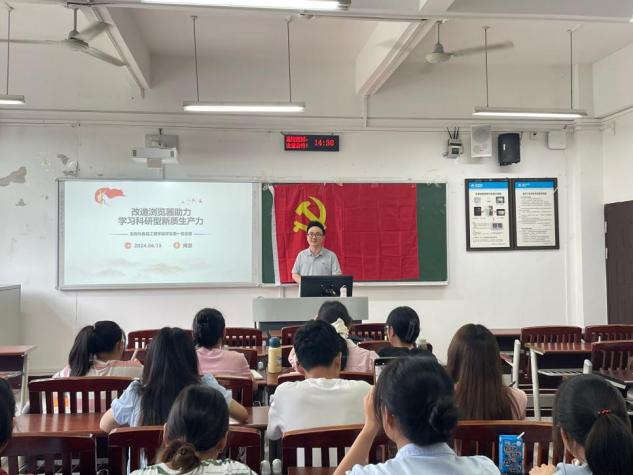 首先,支部委员周游博士带领大家学习了《中国共产党纪律处分条例》第一编第五章第三十六条到第四十八条。接着,周老师从新质生产力的主要特征和基本内涵引入,介绍了怎样改造浏览器进而帮助专业知识的学习,实现科研型新质生产力的提升。支部党员任睿敏、陈红丽分别从“严管厚爱为底线”和生活纪律方面,讲述了反腐的重要性、紧迫性以及廉洁自律的必要性。
